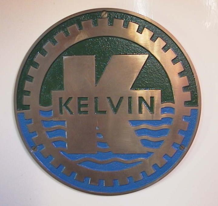 32 black gearteeth and a 'K' with 'Kelvin' across it on a green background,