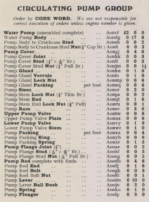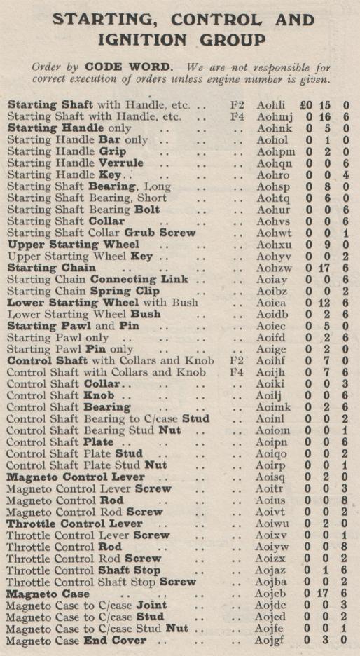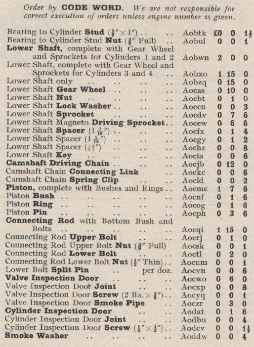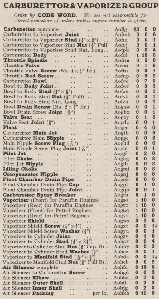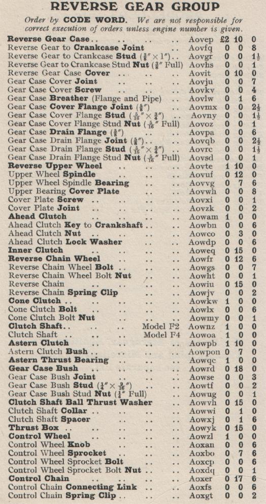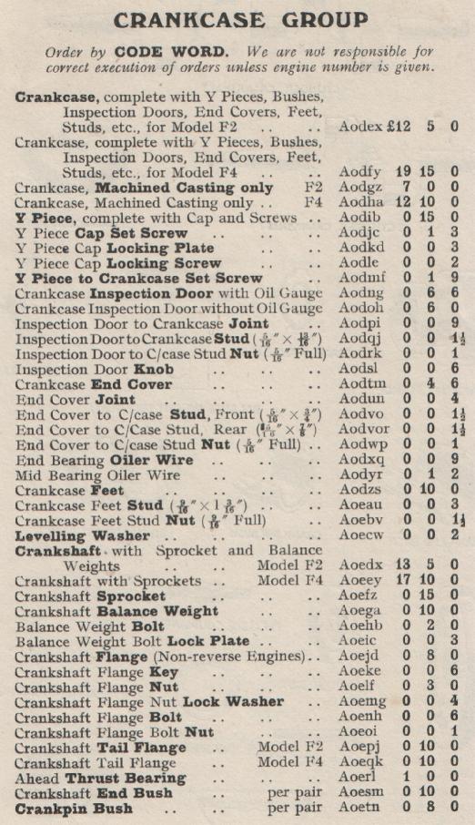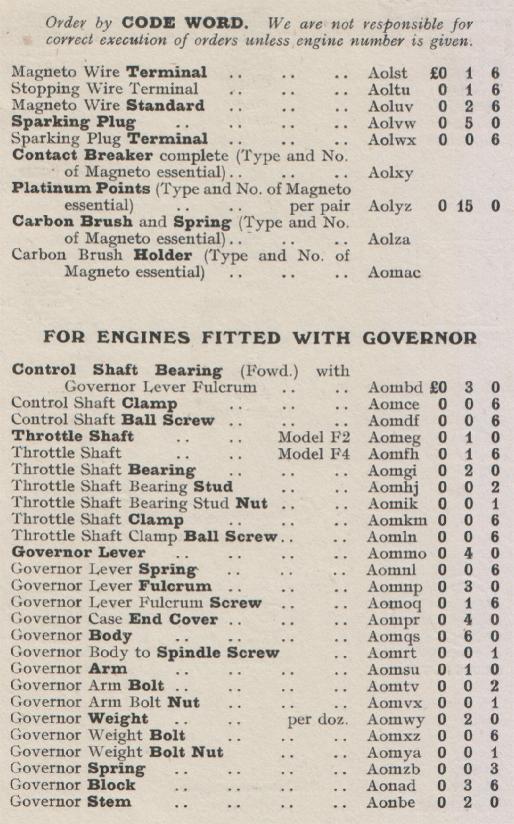 Kelvin Ricardo Model F Spares List