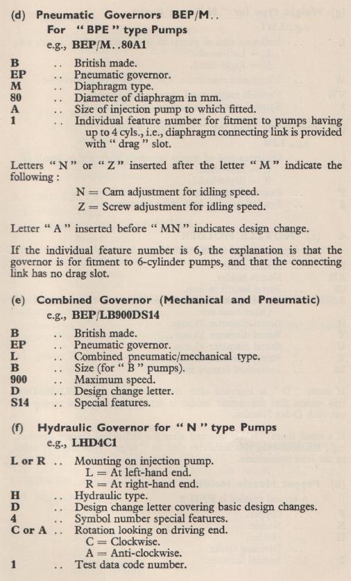 Fuel Injection Equipment Type Formulae